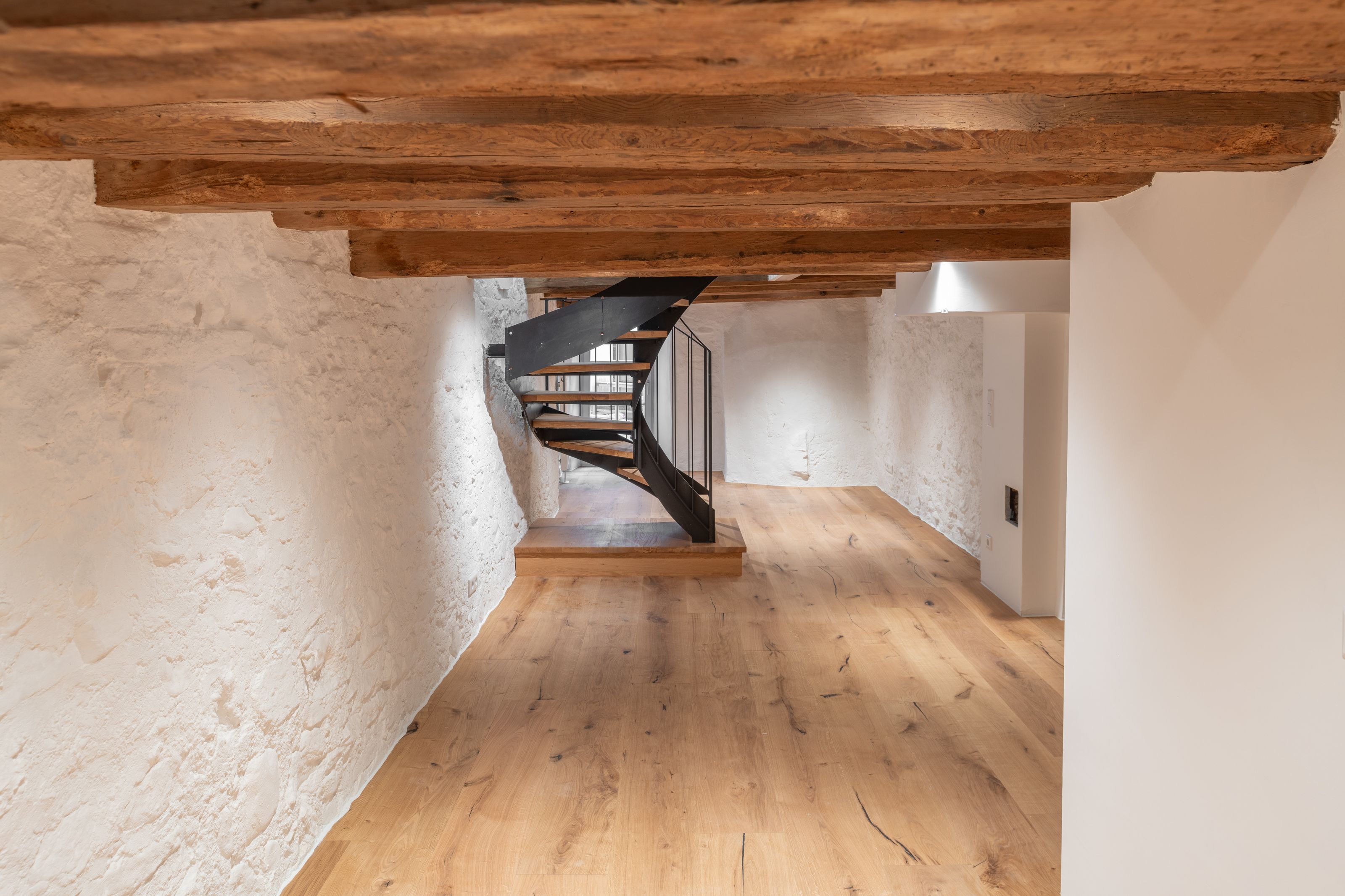 Ein historisches Stadthaus aus dem 16. Jahrhundert, unter Einzeldenkmalschutz stehend, erforderte vor allem im Bereich der Fassaden und des Dachstuhls eine denkmalgerechte Sanierung. Zielsetzung war es, das historische Gebäude im repräsentativen Straßenensemble der Altstadt zu erhalten und gleichzeitig mehr innerstädtischen Wohnraum zu ermöglichen. Das lange, sehr schmale Haus verfügte bislang über vier Geschosse und wies im Bestand zwei Wohneinheiten auf. Durch den brachliegenden Ausbau des Dachgeschosses, sowie Aufteilung des EG und 1.OG entstanden drei weitere Wohneinheiten inklusive zusätzlich nutzbarer Dachterrasse. Historischer Charme wurde so mit zeitgemäßem Wohnkomfort vereint, gemeinschaftliches Wohnen auf schmalem Raum ermöglicht. Durch die Ertüchtigung des Innenhofes, sowie neu eingefügte Balkone entstanden weitere Freiräume die Interaktion und Gemeinschaft zulassen.